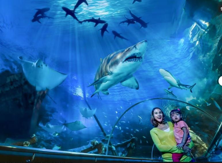 Walk through a 90-meter tunnel as sharks, stingrays, and piranhas swim right above your head.