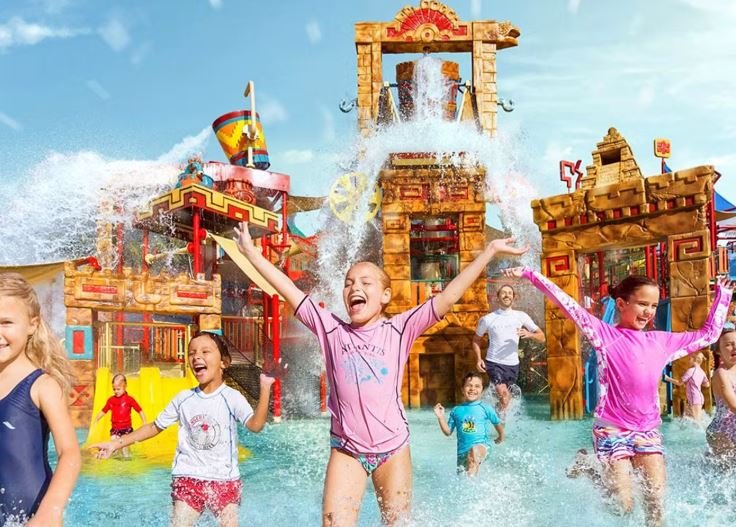 Kids will adore Splashers Island, boasting over 20 interactive water slides, climbing nets, and splash buckets for endless fun.