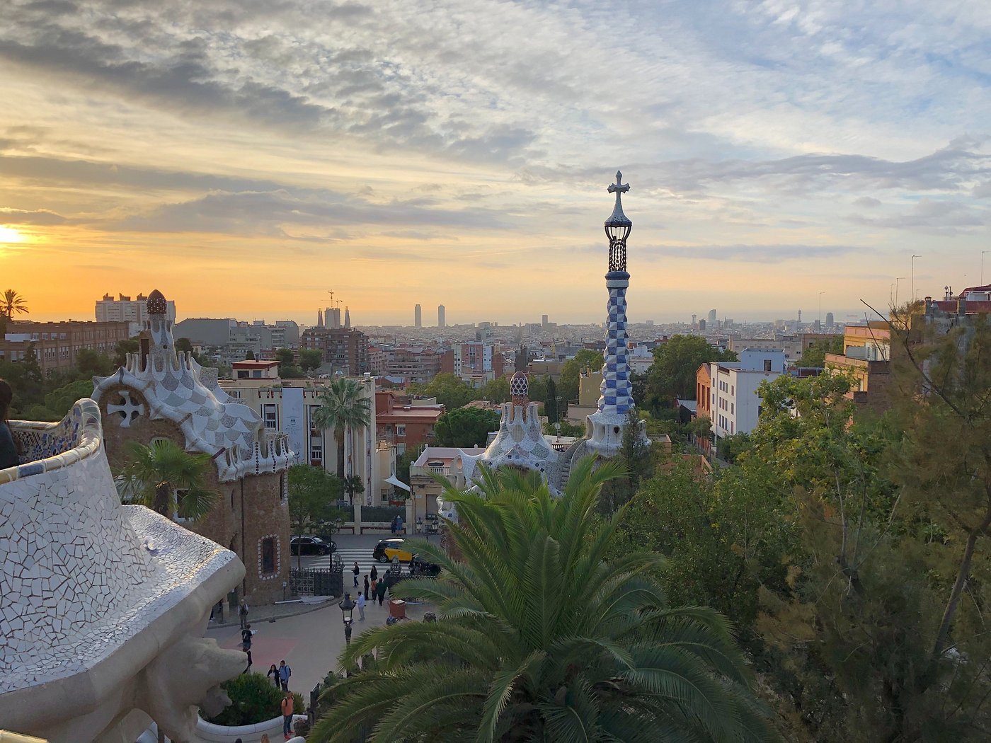 - Wander through whimsical mosaics, colorful sculptures, and the famous serpentine bench overlooking the city skyline.