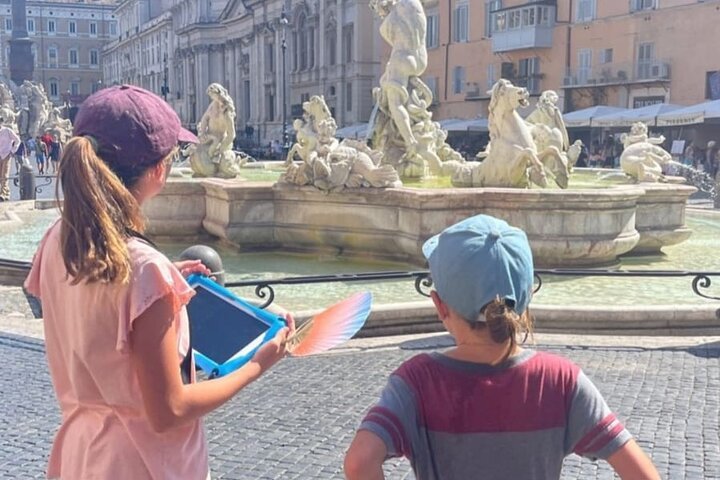 - Grab your tablet and an interactive map of Rome to collect points by solving quizzes and gathering clues.