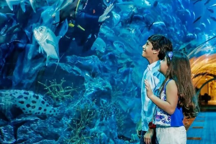 Descend from the clouds and enter the aquatic realm at the world's largest suspended aquarium–Dubai Aquarium and Underwater Zoo and witness distinct marine life.
